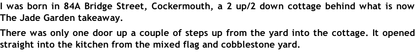 The two downstairs rooms were the kitchen, where most time was spent as the fire was always lit, and a parlour. The stairs went up out of the kitchen and opened directly into the bedroom over the kitchen To get to the other bedroom you walked through the first one.